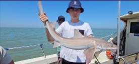 Catch on Braveheart II: 19 lb 5 oz Starry Smooth-hound by Zack ( 14 years old ) first time sea Angling