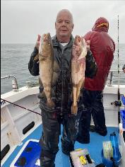 Uptiding trip. 5.9m tide. Room for 2 anglers. Greg 3. Si E 1. Cod / Coalfish (Coley/Saithe) / Ling / Mackerel / Pollock.