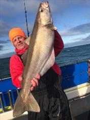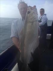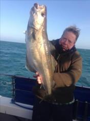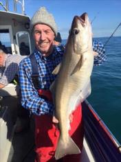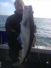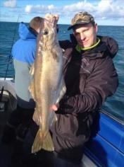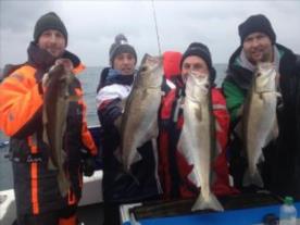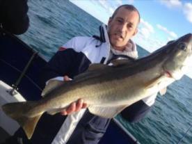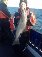 Description: With dirty water inshore because of all the rain. We went further offshore still caught some bass but Pollock like thisone for Steve were had nice fish m8. We have 5 spaces next sun 7th lads