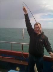 Catch on Just Mary: 1 lb Mackerel by Mackerel at last ! Thanks Pete !