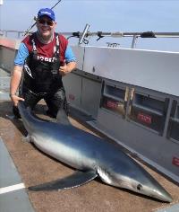 Catch on Meerkat: 55 lb Blue Shark by Mike Wallis