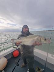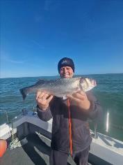 Description: Paul BBeavis with a nice bass caught on yellowtails while uptiding.